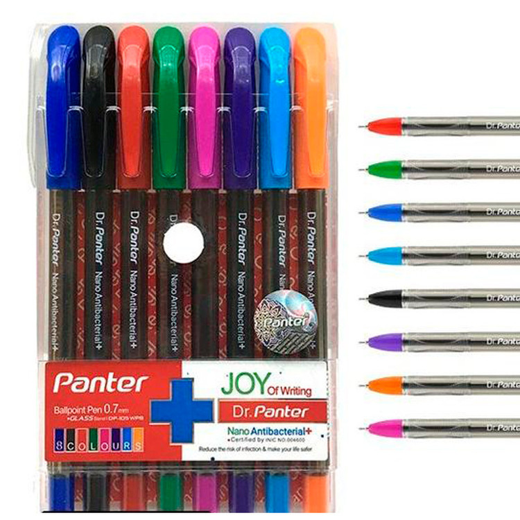 سایز نوک 0.7 میلیمتری - ریز نویس نگارش کاملا روان و یکنواخت دارای بدنه نانو آنتی باکتریال دارای دو بسته 8 رنگ جذاب و پر کاربرد