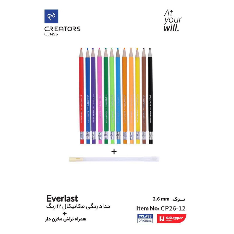 مداد رنگی 12 رنگ کریتورز کلاس مدل فشاری به همراه تراش